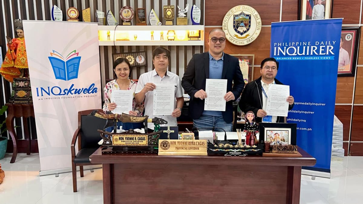 On Dec. 2, Mendoza, Gov. Yvonne Cagas, represented by lawyer Herbert Gonzales, the provincial administrator, and Inquirer officers signed a memorandum of agreement (MOA) formalizing the partnership, making the province INQskwela’s first LGU (local government unit) partner in Mindanao and the 10th nationwide.